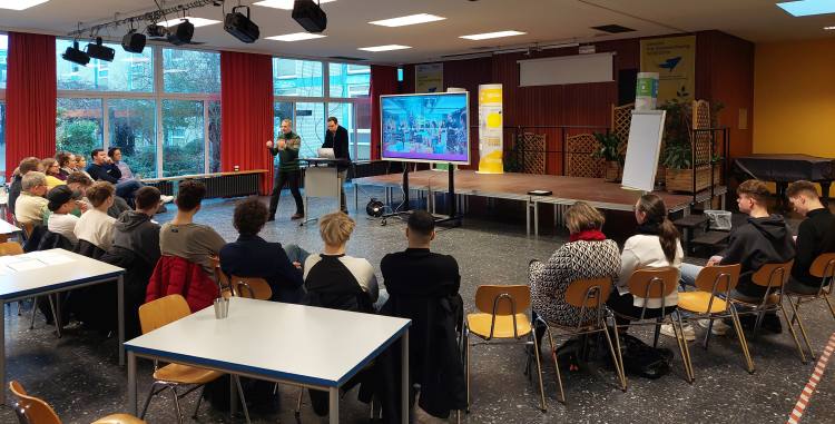 Am 12. und 13 Februar 2026 war das Nachhaltigkeitsforum (Aula) der BBS I Uelzen ein Fortbildungs- und Zukunftsdenkraum für gut 70 Lernende. Für das zweitägige Kooperationsprojekt waren aus Berlin die „Baut Eure Zukunft Design-Thinking Methodentrainer“ Herr Uwe Birkel und Herr Michael Metzger zum „Baut Eure Zukunft Leuchtturm BBS 1 Uelzen“ angereist, um am 12. Februar gut 15 BBS I Lehrkräfte zum Thema: „Lernen neu denken“ fortzubilden. Am 13. Februar wurden dann mit fast 60 Lernenden aus den Fachoberschulen mit der Methode „Design-Thinking“ elf nachhaltigkeits-orientierte Geschäftsideen entwickelt.